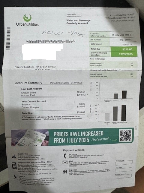 • Water $326.00 per ¼